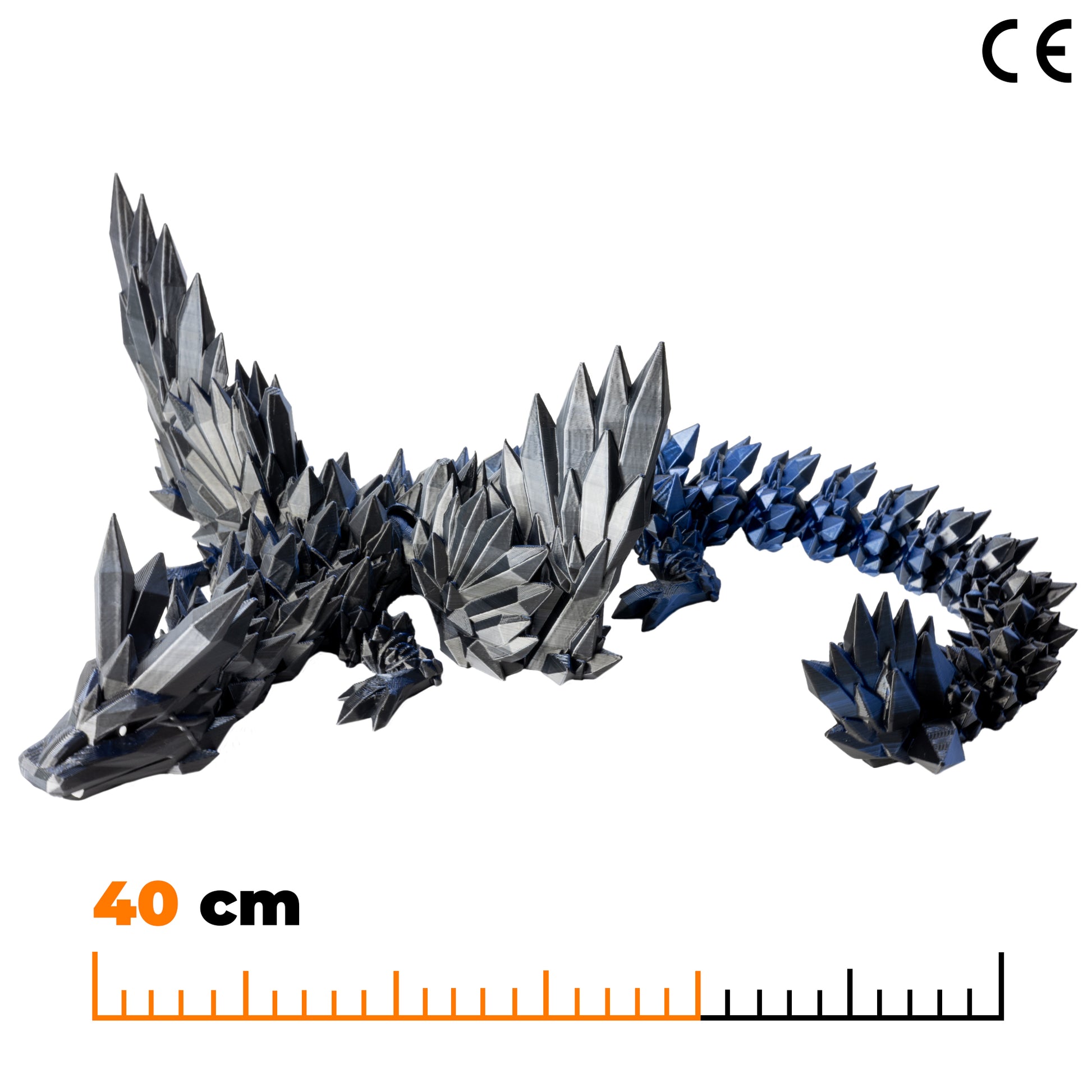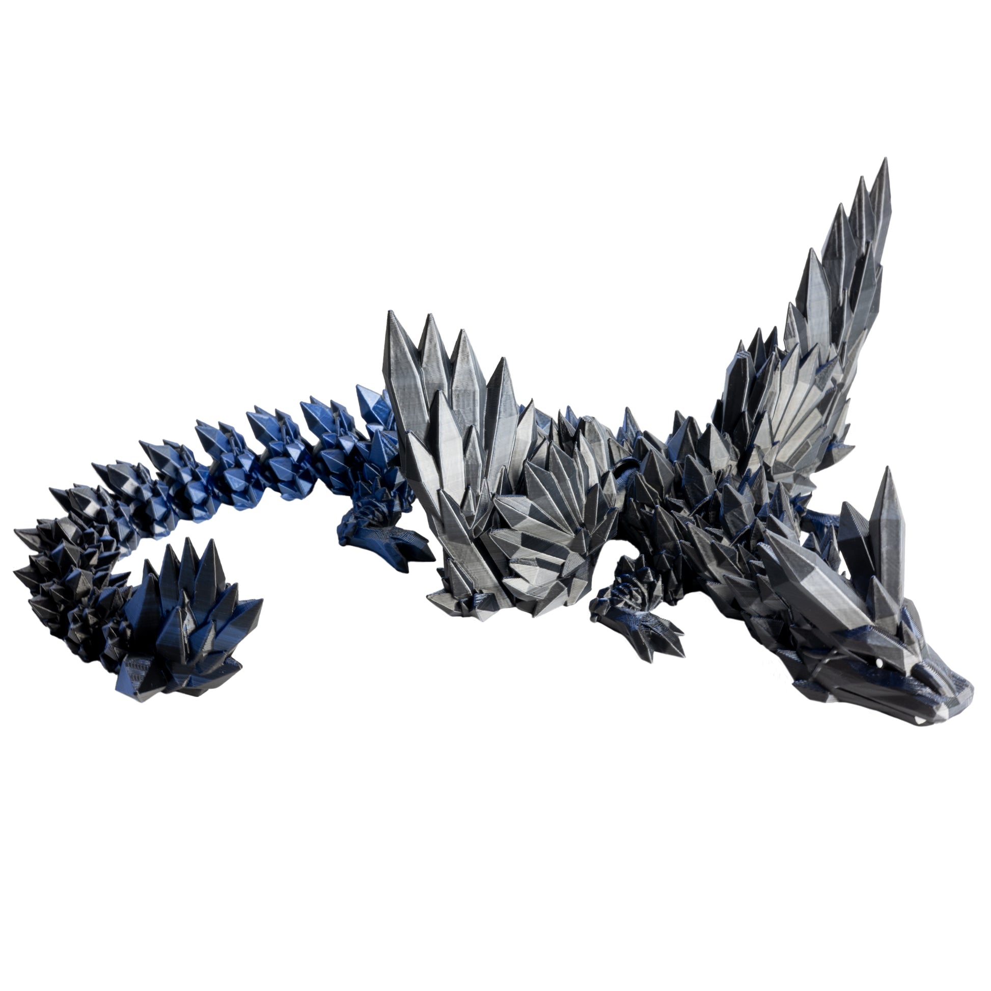 Okřídlený krystalový dračí dospělák - Černo-modro-stříbrná